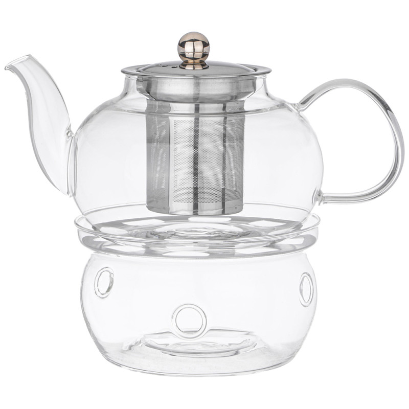 Чайник заварочный с фильтром из нжс и стекл. подставкой для подогрева 800 мл (кор=24набор.) AGNESS 887-257