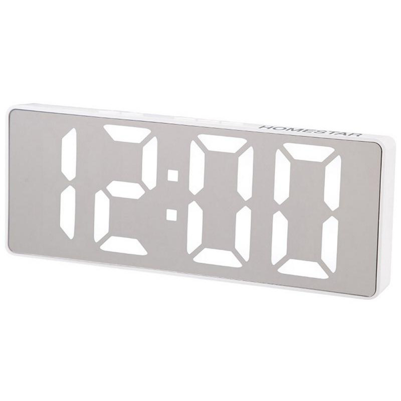 1Вт, LCD дисплей, зеркальная поверхность, крупный шрифт, формат времени 12/24ч, 2 будильника, показатель t (по Фаренгейту и Цельсию), работа от USB(в компл)/работа от батареек 3хAAA (нет в компл), режимы отображения времени, даты и температуры переключаются авто с интервалом в несколько секунд