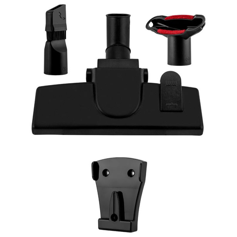 600Вт, пылесборник 0,8л, мощность всасывания 185Вт, щетка с переключателем пол/ковёр, насадки д/мебели/щелей , настенное крепление, шнур 8м
