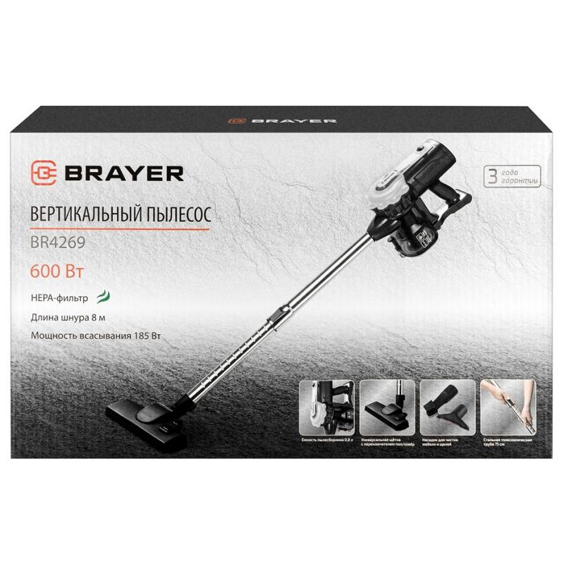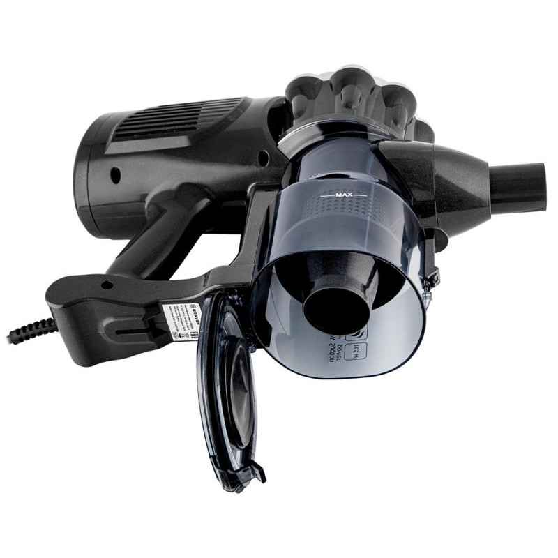 600Вт, пылесборник 0,8л, мощность всасывания 185Вт, щетка с переключателем пол/ковёр, насадки д/мебели/щелей , настенное крепление, шнур 8м