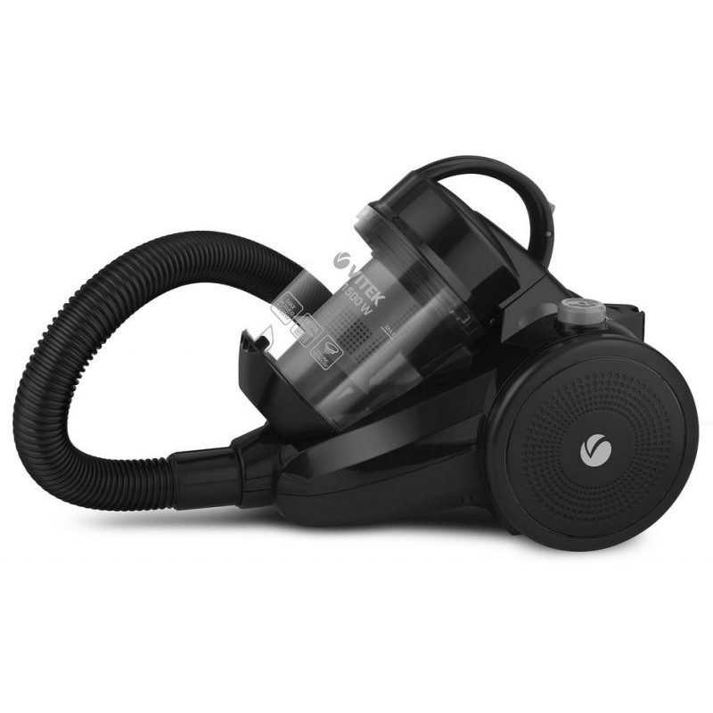 1500Вт, мощность всасывания 200Вт, без мешка, пылесборник 1.5л, технологияCyclonic, 3-ступенчатая система фильтрации, HEPA-фильтр, стальная телескопическая трубка, щетка пол/ковер