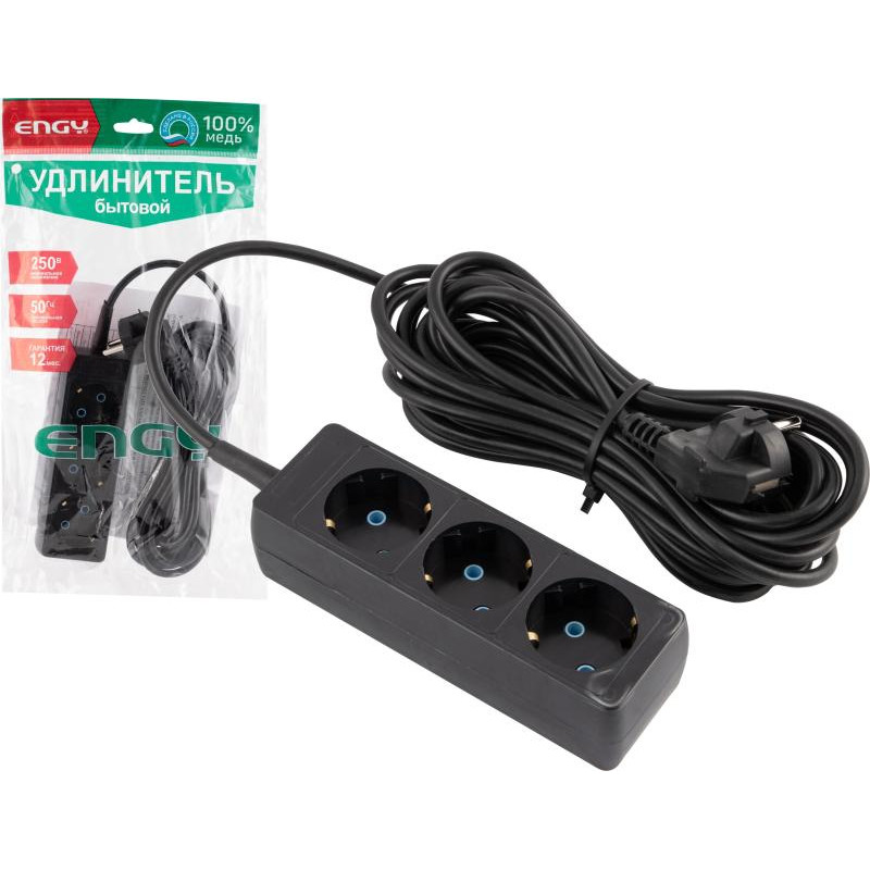 186740 Удлинитель Engy 'Гранд' 7м/3роз с заземлением (ПВС 3х0.75) черный