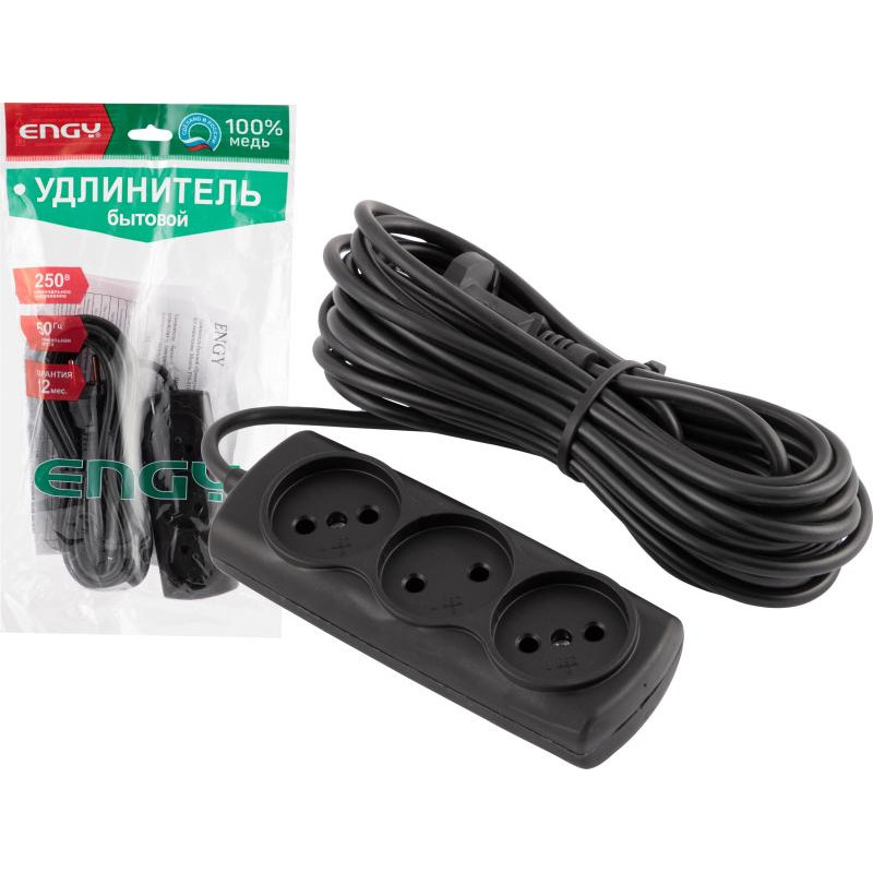 186745 Удлинитель Engy 'Премиум' 7м/3роз (ПВС 2х0.75) черный