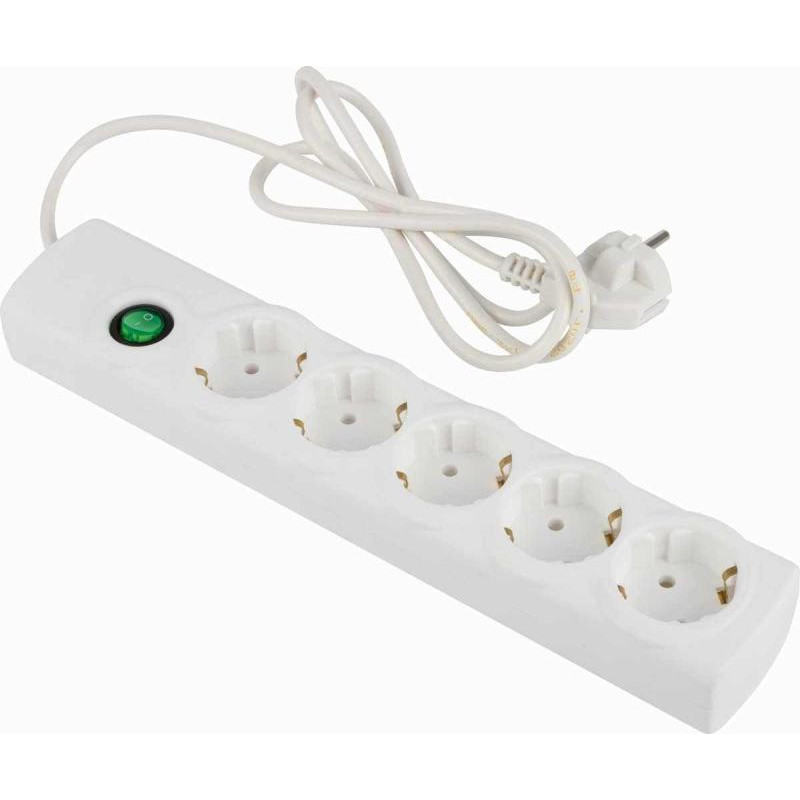 5 розеток, с заземлением, 220В, 6А, суммарная мощность нагрузки 2.2кВт, длина шнура 5м, выключатель