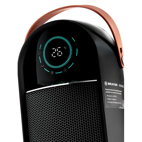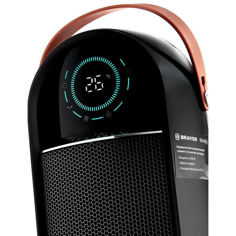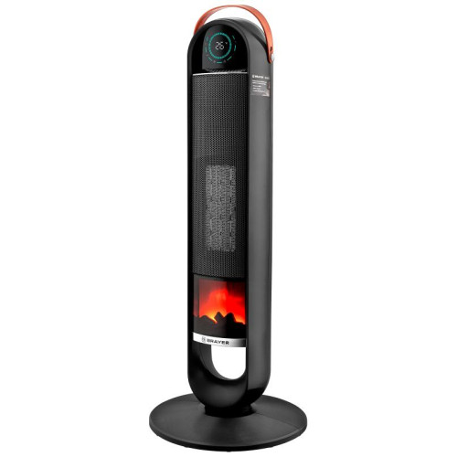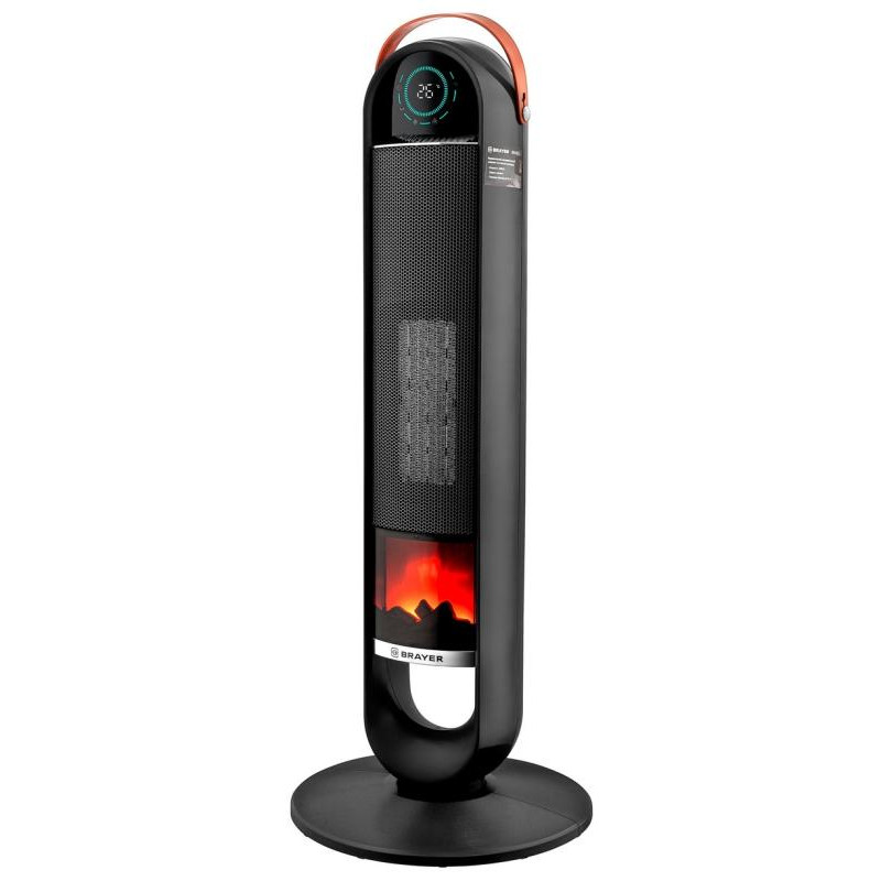 2000Вт, 2 уровня мощности обогрева 1400/2000Вт, высота 80.7см, керамический нагревательный элемент, эффект пламени, площадь помещения до 20м2, 3 режима работы: холодный, теплый, горячий воздух, таймер 1-15ч, вращение корпуса 60°, автоотключение при опрокидывании, защита от перегрева, индикация t° комнаты, сенсорная панель управления, LED-дисплей, пульт дистанционного управления, ручка для переноски