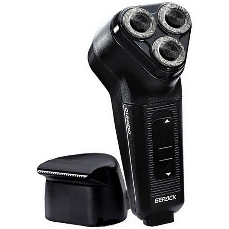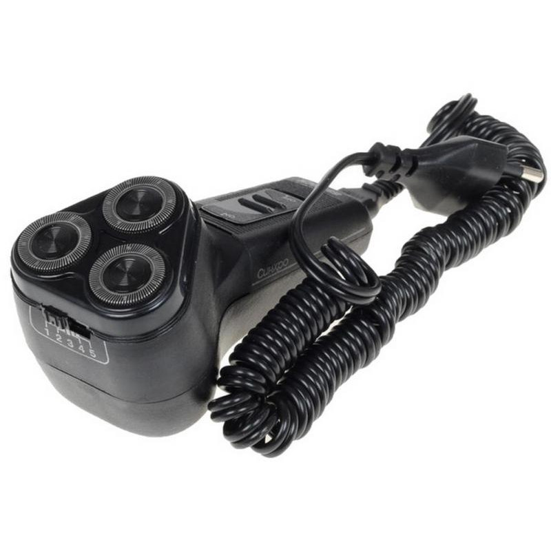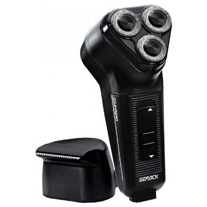 сеть, потребляемая мощность не более 6W, роторная, 3 бреющих головки, триммер для бороды и усов, сухое бритье, регулировка глубины плавания ножей, пластиковый футляр