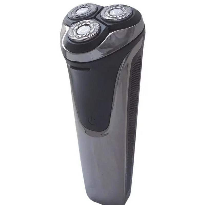 акк, номинальная потребляемая мощность 5W, роторная, 3 бреющих головки, сухое бритье, время зарядки 5ч, время работы 45ч, влагозащитный корпус, двухдорожечные ножи, плавающие бреющие головки