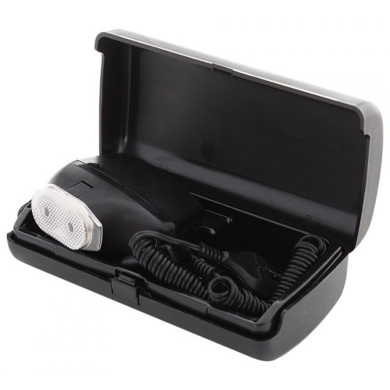 сеть, потребляемая мощность 10W, роторная, 2 бреющих головки, триммер для бороды и усов, сухое бритье, пластиковый/мягкий футляр