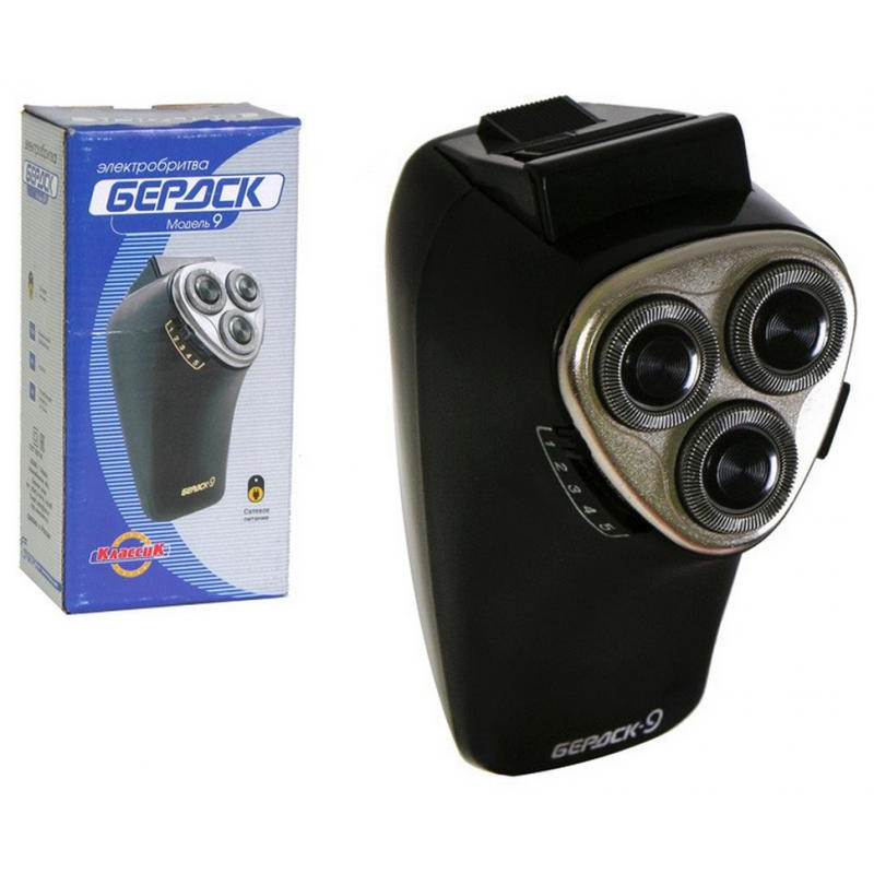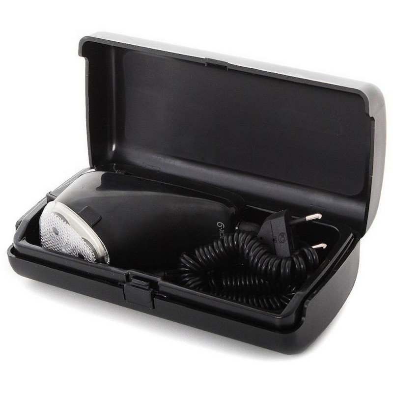 сеть, потребляемая мощность 10W, роторная, 3 бреющих головки, триммер для бороды и усов, сухое бритье, регулировка глубины плавания ножей, пластиковый/мягкий футляр