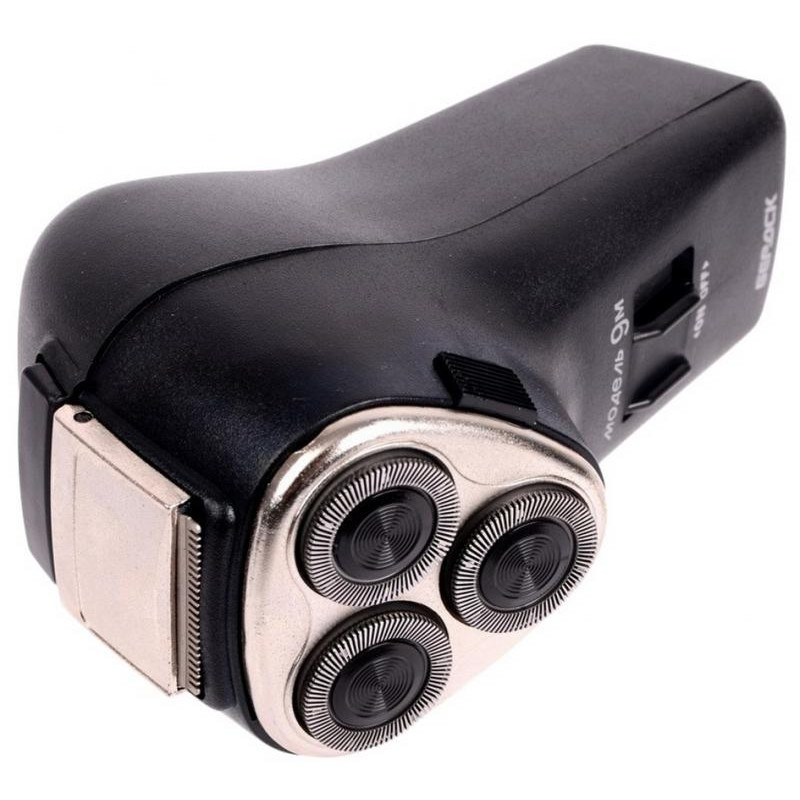 сеть, потребляемая мощность 10W, роторная, 3 бреющих головки, триммер для бороды и усов, сухое бритье, регулировка глубины плавания ножей, пластиковый/мягкий футляр