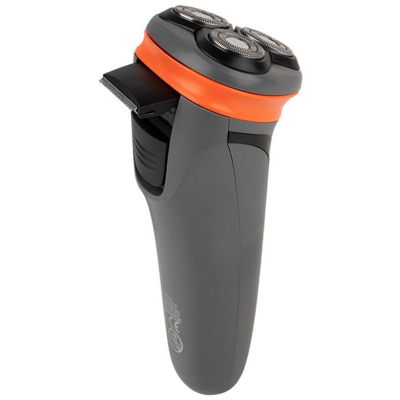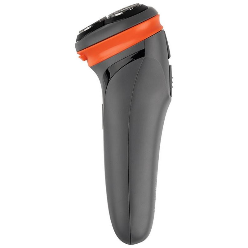 3Вт, LED дисплей, блок независимых бреющих головок, три независимых лезвия, триммер для бакенбард и бороды, встроенный аккумулятор Li-Ion батарея 14500 600мАч, зарядка от USB, время работы до 70мин, время зарядки 2ч, защитная крышка, щеточка для очистки, шнур USB