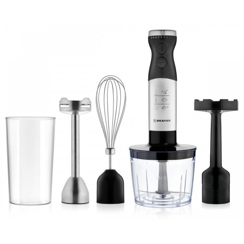 800Вт, нога металл, плавная регулировка скорости, турборежим, венчик, стакан 700мл, измельчитель 500мл, насаднка д/пюре