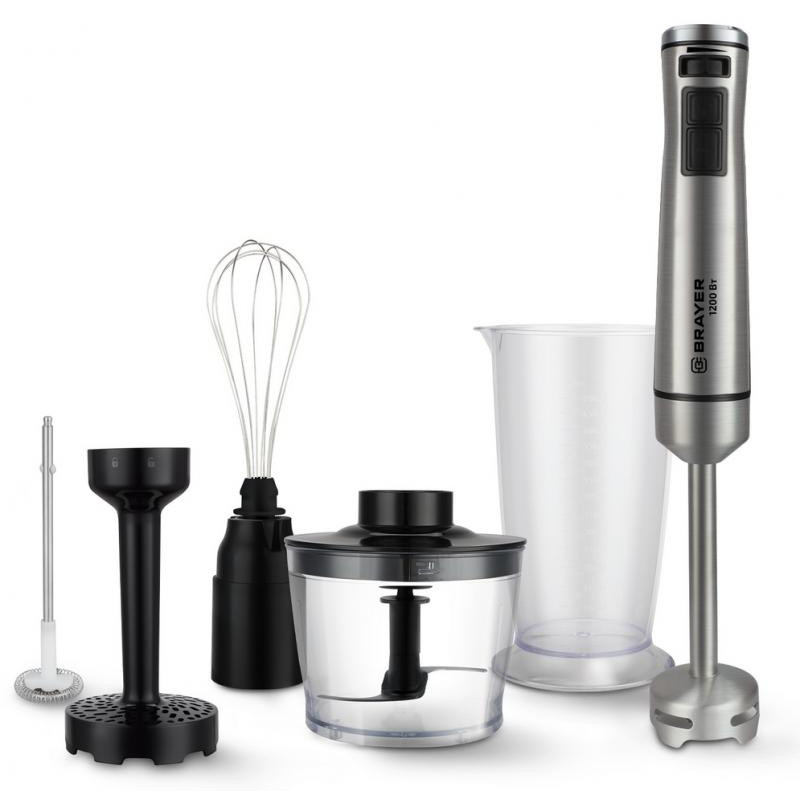 1200Вт, лезвия/погружная часть нерж.сталь, стакан 700мл, венчик, насадка-блендер, насадка для приготовления пюре, капучинатор, плавная регулировка скорости, турборежим