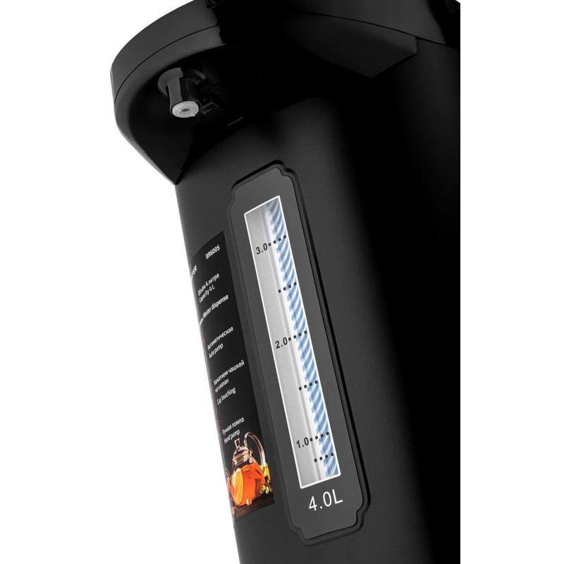 900Вт, 4.0л, корпус сталь, 3 режима работы, функция поддержания температуры воды, функция повторного кипячения, шкала уровня воды, надежная крышка с фиксатором, удобная ручка для переноски, отключение при отсутствии воды, поворачивающийся корпус на 360°
