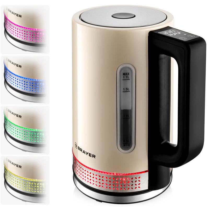 2200Вт, 1.7л, нерж.сталь, сенсорное управление, выбор t нагрева (40-100 °С), поддержание заданной t в течение 2ч, контроллер STRIX, подсветка разного цвета