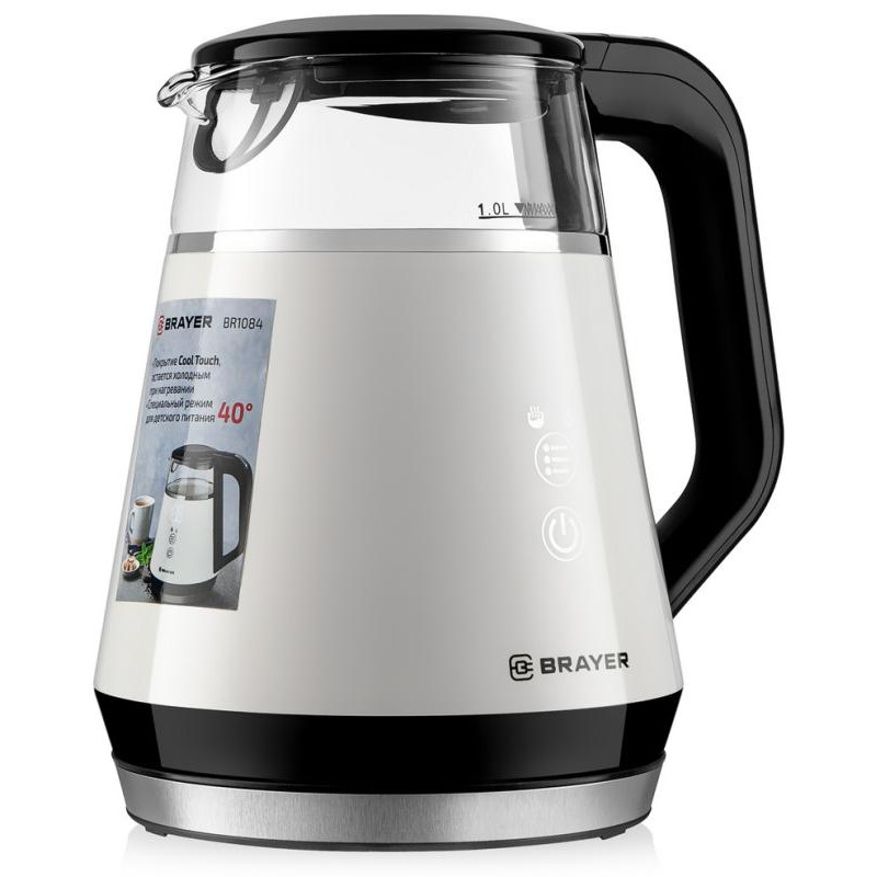 1100Вт, 1.0л, стекло, покрытие Cool Touch, сенсорное управление, выбор t нагрева (40-100 °С), поддержание заданной t в течение 2ч