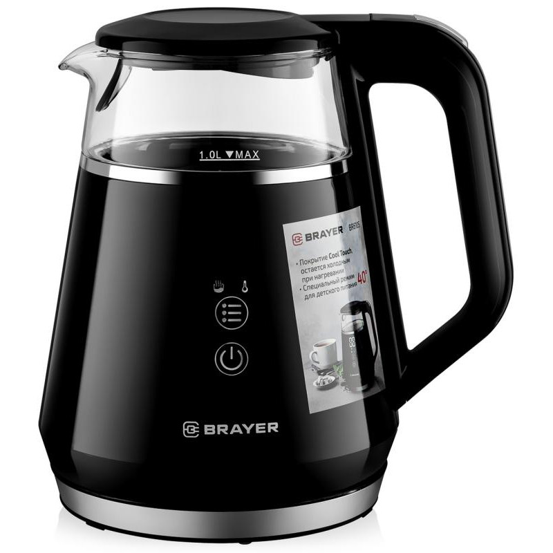 1100Вт, 1.0л, стекло, покрытие Cool Touch, сенсорное управление, выбор t нагрева (40-100 °С), поддержание заданной t в течение 2ч