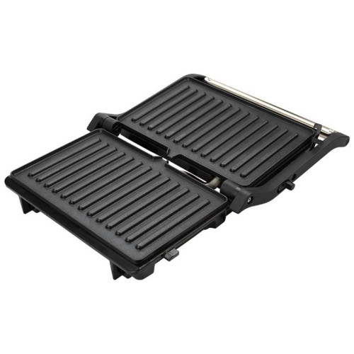 1200Вт, 23х14.5см, антипригарное покрытие, открывание на 180 градусов, поддон для сбора жира, ненагревающиеся ручки, нескользящие ножки