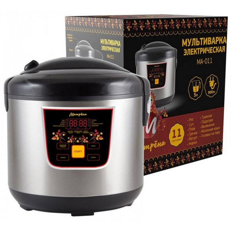 900Вт, корпус нерж.сталь, 11 программ, отсрочка старта, чаша 5л, антипригарное покрытие, LED дисплей, поддержание t, автоотключение при перегреве, съемный шнур