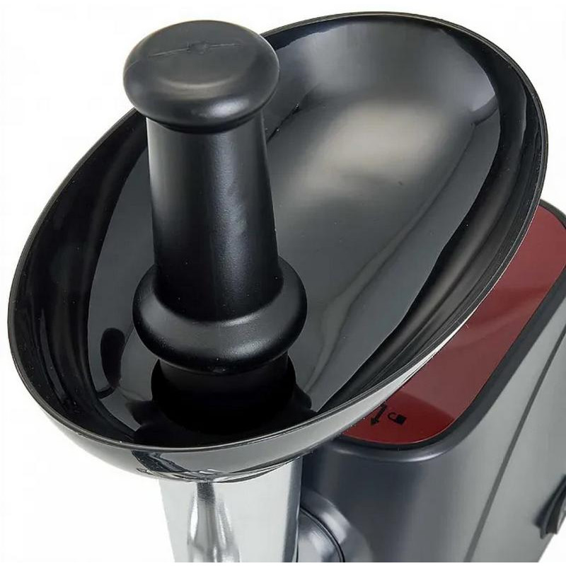 2000Вт, реверс, метал.шнек, 3 насадки-овощерезки, 2 решетки-насадки 5 и 7мм, 2 насадки куббе, насадка для набивки колбасок, защита от перегрева