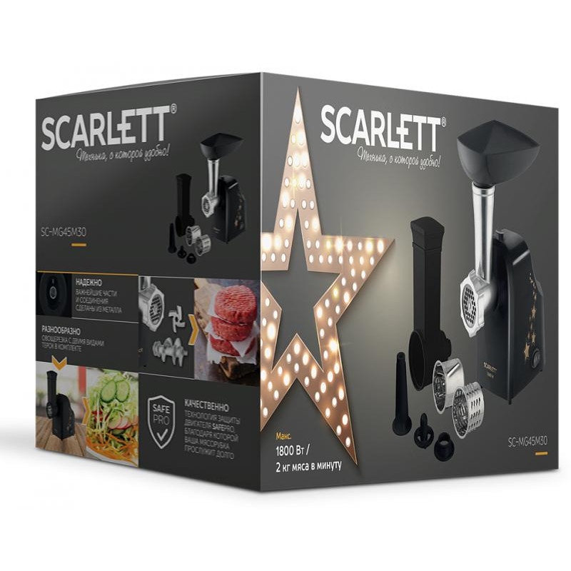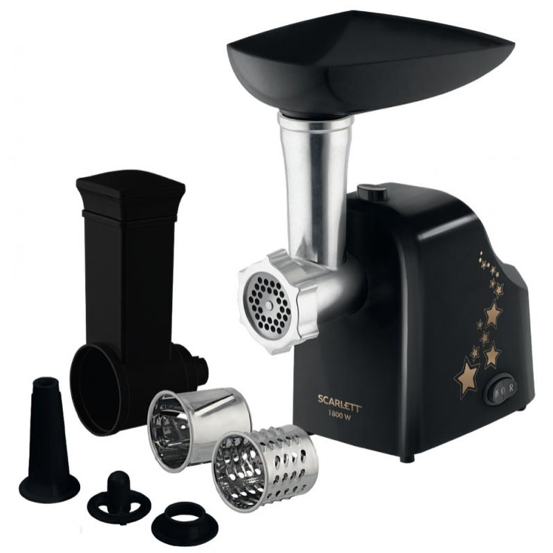 1800Вт, реверс, 1 решетка с отверстиями 5мм, насадки кеббе+д/колбасы, овощерезка с теркой, шинковка