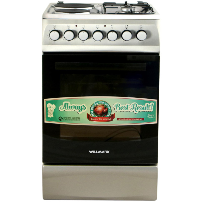 Плита комбинированная WILLMARK CS-5623 (2 газ./2 эл, эл.духовка, таймер, внутр.осв, 50х60, нержав.ст)