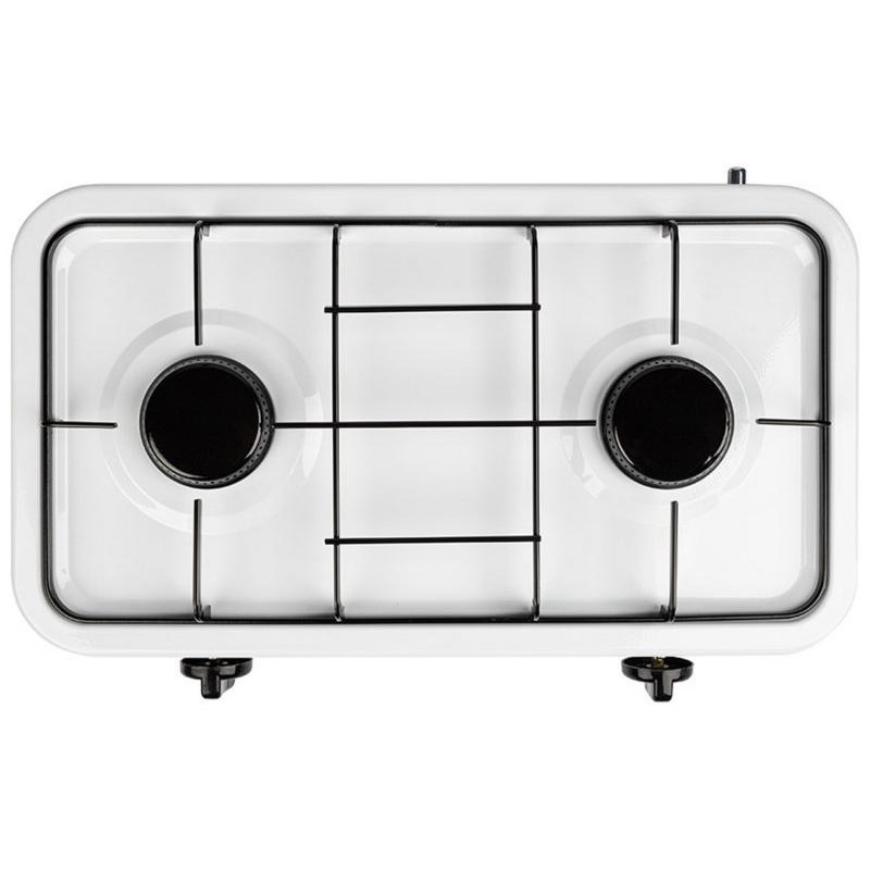 2х2800Вт, 2 конфорки, средний расход газа 320гр/час, алюминиевый корпус, тип топлива: сжиженный нефтяной газ, предохранительный клапан
