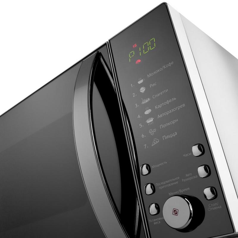 900Вт, 25л, цифровое управление, LED-дисплей, 6 уровней мощности, 7 режимов приготовления, режим разморозки, электронные часы, таймер 95мин, d270мм блюдо