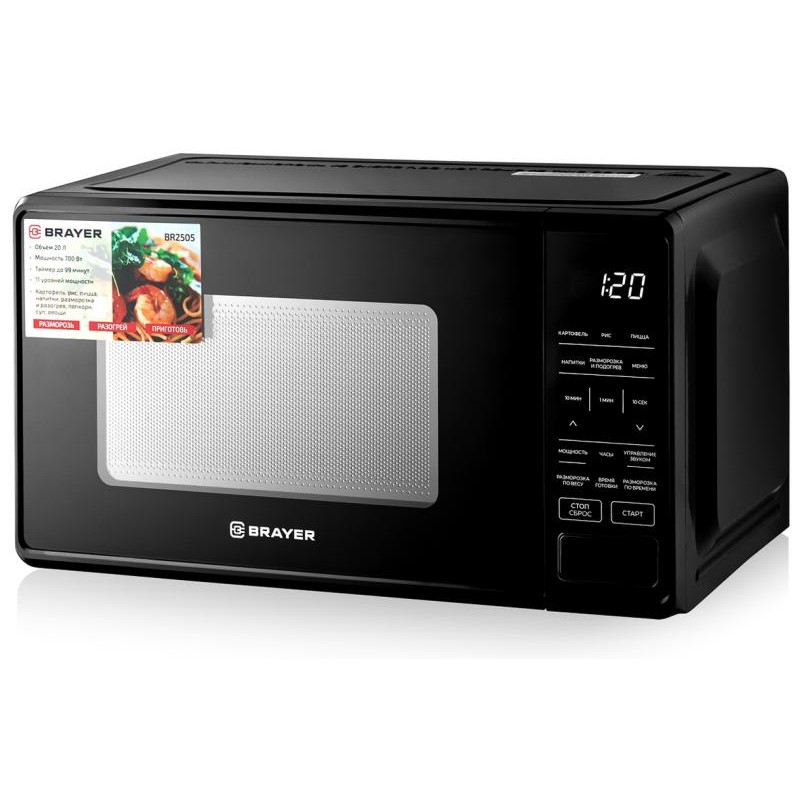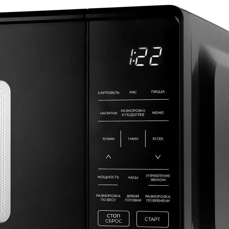 700Вт, 20л, цифровое управление, LED-дисплей, 11 уровней мощности, 9 режимов приготовления, режим разморозки по времени и весу, электронные часы, блокировка кнопок для безопасности, электронные часы, таймер 99мин 50сек, d245мм блюдо