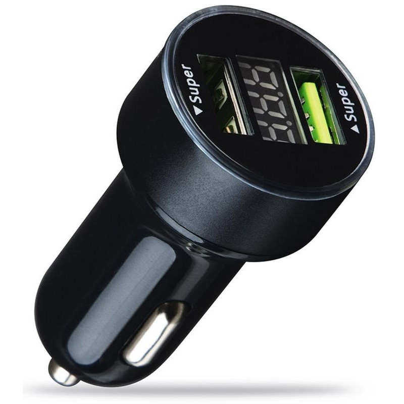 30Вт, пластик/металл, 2 разъема USB-A + USB-A, входное напряжение 12-24В, выходное напряжение 5В/3.1А, вольтметр, ток зарядки 3.1А, защита от перегрузки, подсветка