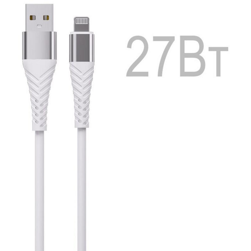 USB-Lightning (для продукции Apple), USB 2.0, 27Вт, ток нагрузки 3А, рабочее напряжение 5В, 1 метр, совместимость: планшеты, смартфоны и другие цифровые устройства с разъёмом Lightning