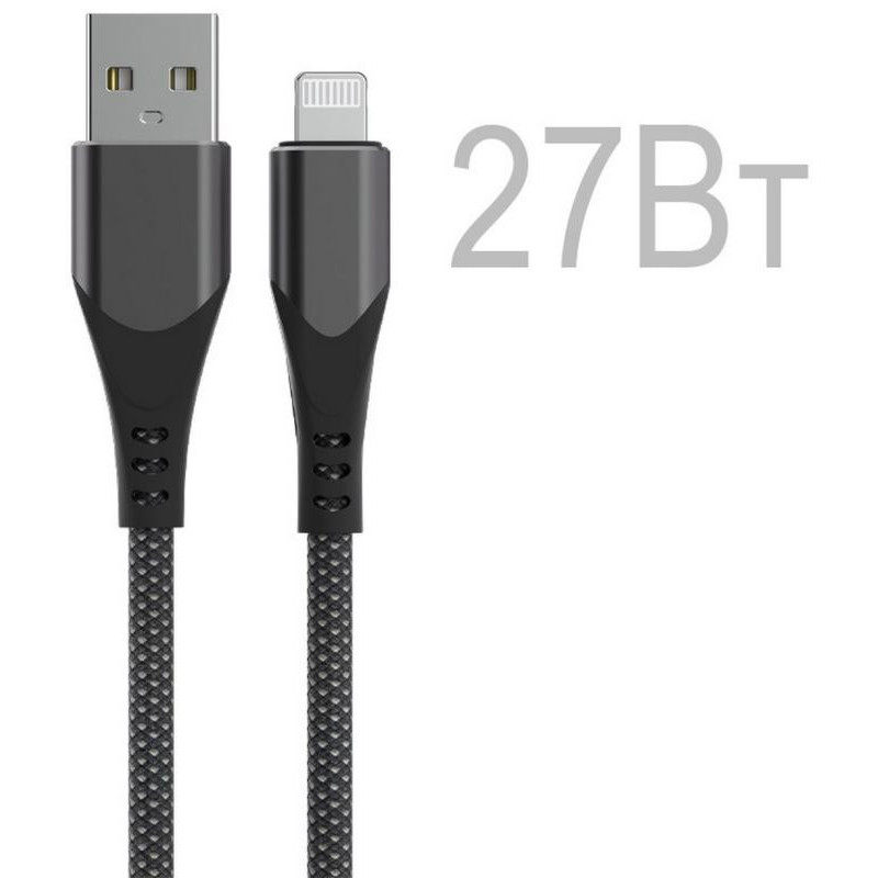 USB-Lightning (для продукции Apple), USB 2.0, 27Вт, ток нагрузки 2А, рабочее напряжение 5В, 1 метр, совместимость: планшеты, смартфоны и другие цифровые устройства с разъёмом Lightning