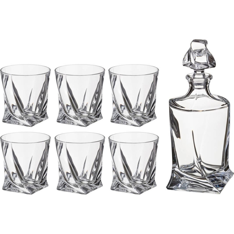Набор для виски "КВАДРО" 7пр.: штоф+6 стаканов 850/340 мл. высота=27/10 см. (кор=3набор.) CRYSTAL BOHEMIA 669-138