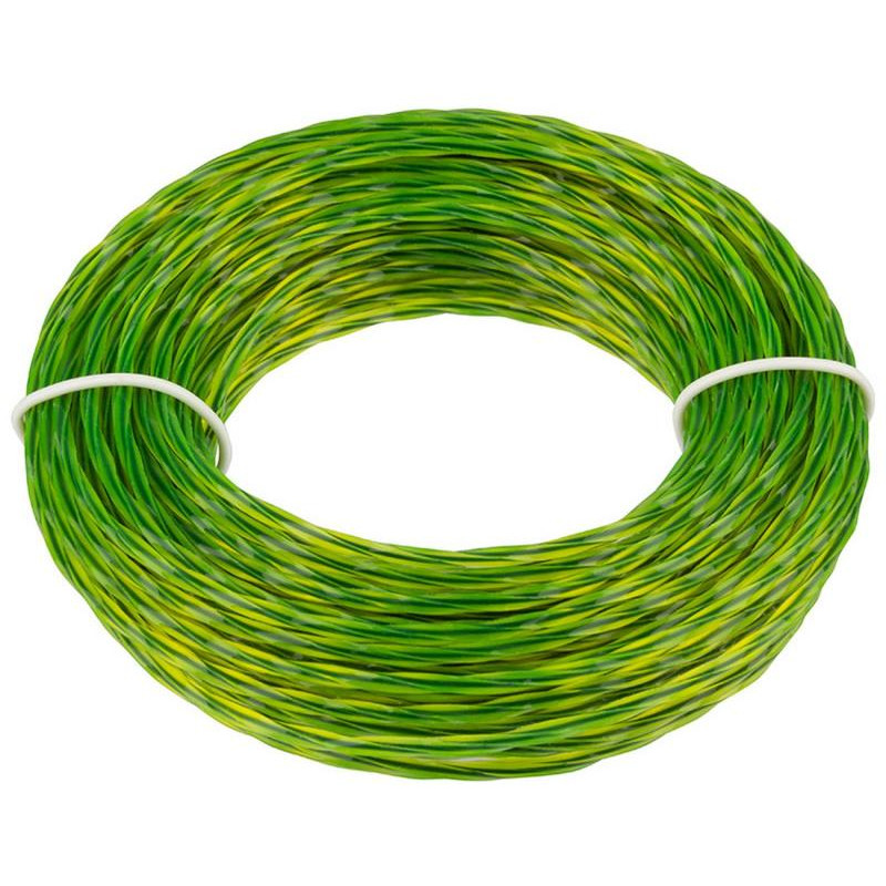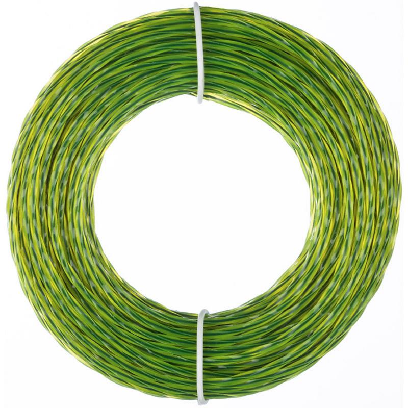d2.4мм, длина 15м, нейлон, сечение квадрат перекрученный со стержнем, цвет зелено-желтый