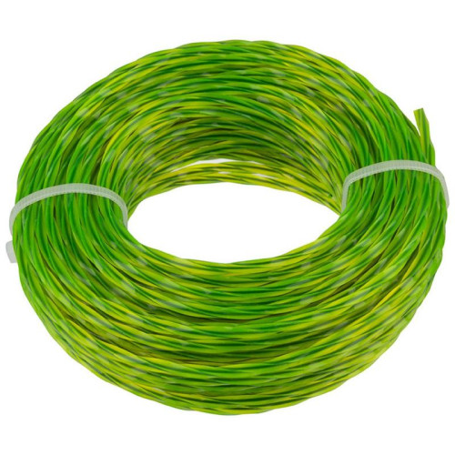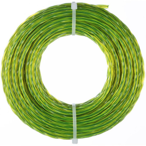 d3.0мм, длина 15м, нейлон, сечение квадрат перекрученный со стержнем, цвет зелено-желтый