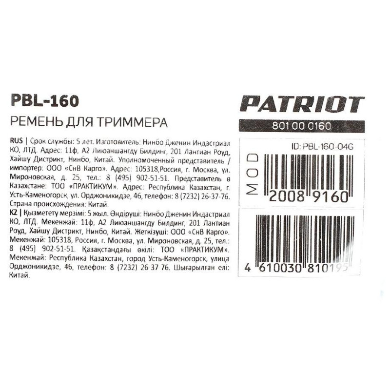 Ремень для триммера PATRIOT PBL 160 (801000160)