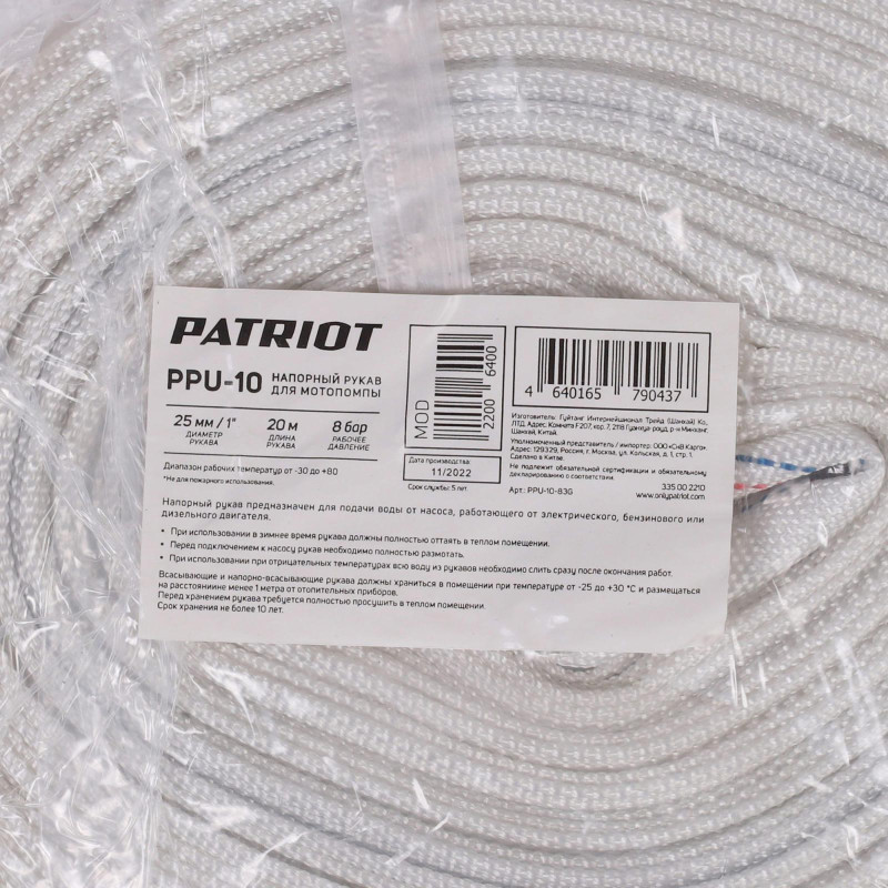 Рукав напорный PATRIOT PPU 10 (335002210)