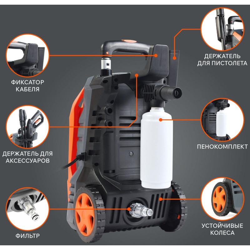 В сферу применения входит: очистка строительного и садового инструмента от раствора, бетона, земли и т.д.; очистка плодовых деревьев от отмерших частей коры, мхов и лишайников; мойка автомототранспорта, велосипедов, спортивного инвентаря и оборудования; удаление высолов с кирпичной кладки стен и фасадов зданий, мойка бетонных дорожек, заборов, черепичных крыш, и т.д. Для работы с функцией самовсасывания, перед запуском, заполните водой подающий шланг и насос, емкость с водой должна располагаться не ниже уровня мойки, длина подающего шланга не должна превышать 1, 5 метра. Учтите, в режиме самовсасывания, мощность снижается на 10-15%.