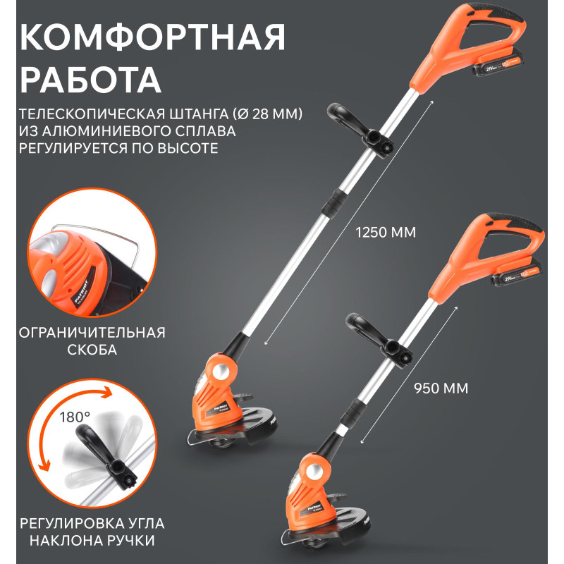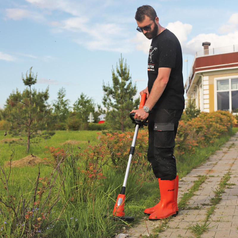 • Телескопическая ручка, регулировка угла и положения рукоятки и двигателя – вы сможете настроить триммер под свой рост;
