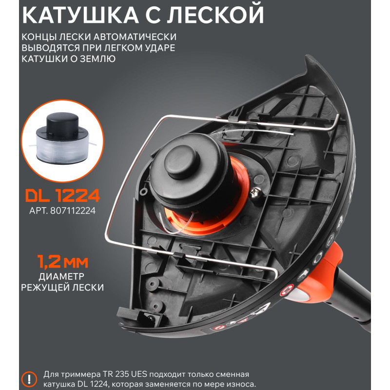 TR 235UES – тихий компактный аккумуляторный триммер для ухода за газоном садового участка.