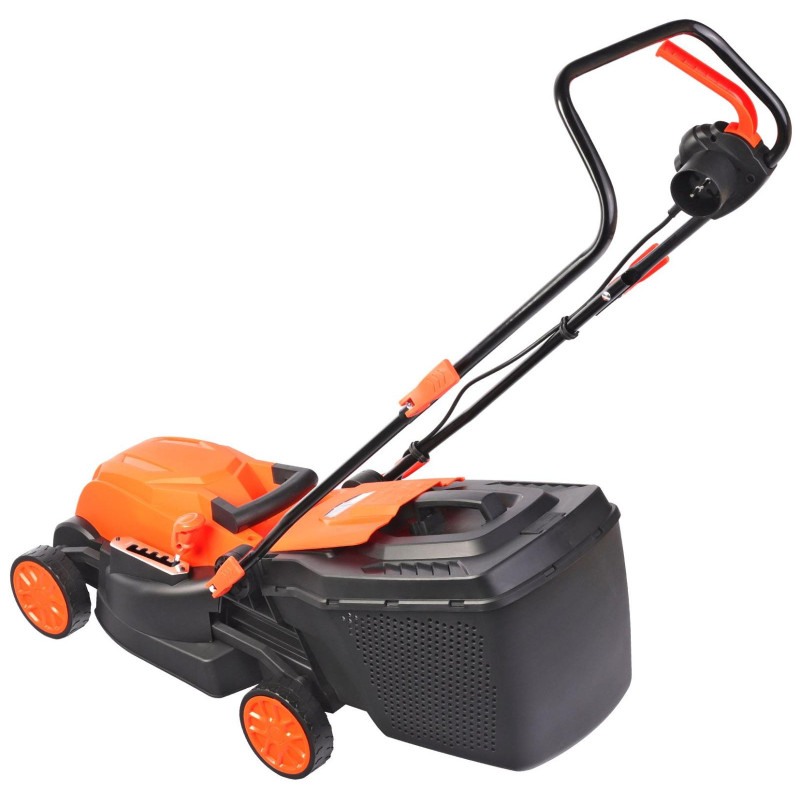 Компактная электрическая газонокосилка РТ 1433 E в обновленном дизайне с изменяемой высотой скашивания предназначена для срезания и сбора травы на ровной площади малых и средних приусадебных участках.
