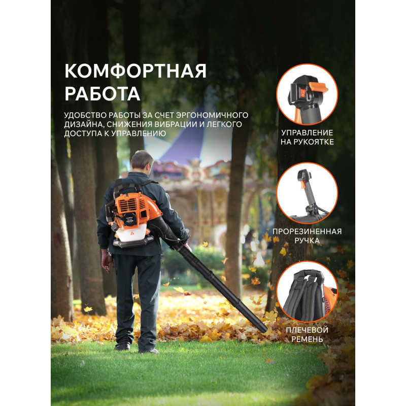 Воздуходувка ранцевая бензиновая PATRIOT BGK 345 для уборки большой территории от скошенной травы, веток, листвы, другого мусора и снега. Эргономичная конструкция, низкий уровень вибрации, ранцевый ремень и воздухопроницаемая мягкая подкладка для спины обеспечивают максимум удобства при работе оператора. Регулятор оборотов двигателя находится на рукоятке, его положение можно легко менять. Топливный бак большого объема рассчитан на продолжительную работу.