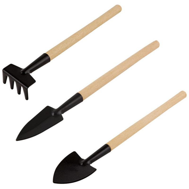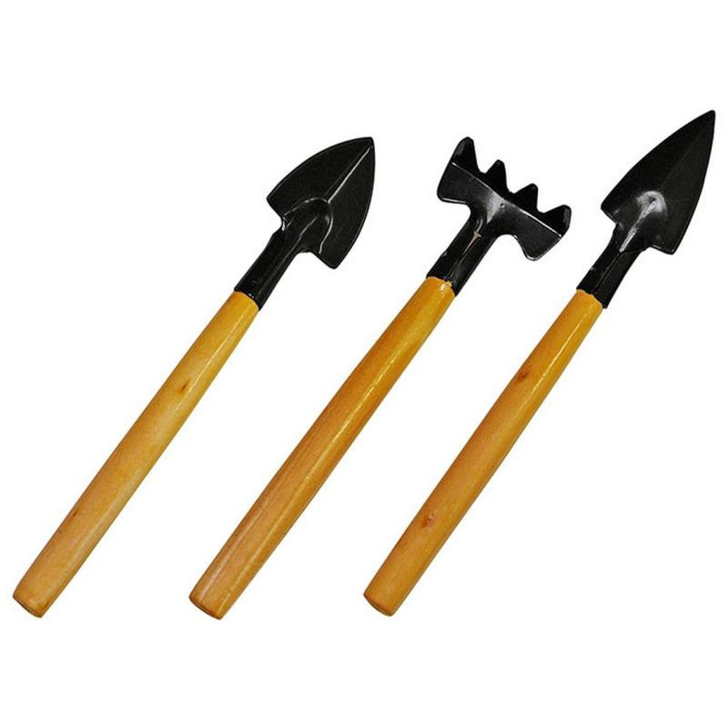 дерево/металл, совок широкий 20.5х4х4см, совок узкий 21х5х3см, грабельки 17х4х2см, для комнатных растений