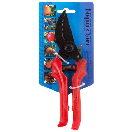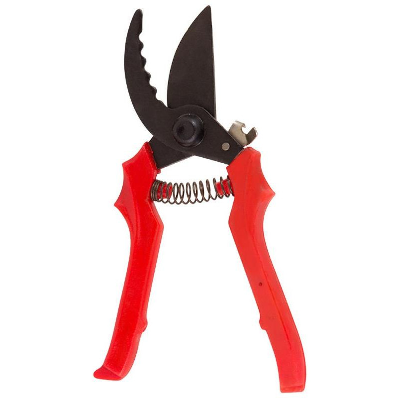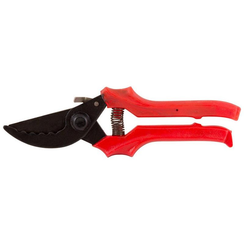 220мм, для обрезки садовых растений, сталь/полипропилен, оксидированное покрытие лезвий, металлическая защелка, режущая способность до 15мм сырой древесины.