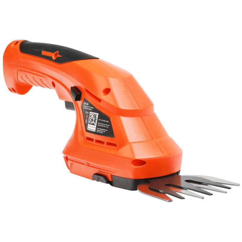 Легкие и тихие ножницы-кусторез аккумуляторные СSH 361 для подравнивания молодых побегов, стрижки кустарников и краев газона. Используются, как садовые ножницы с шириной среза 80 мм или в качестве кустореза с длиной ножа 120 мм. Острые лезвия справятся с побегами крыжовника, малины, хвойниками. Эргономичное расположение элементов управления и прорезиненная рукоятка гарантируют комфортную работу без утомления. На одном заряде аккумулятора работают до 35 минут. Заряжается аккумулятора от любого адаптера питания для смартфона, время зарядки до 90 минут (в комплекте кабель USB Type-C). Для еще более комфортной работы в комплект поставки включена телескопическая штанга на роликах.