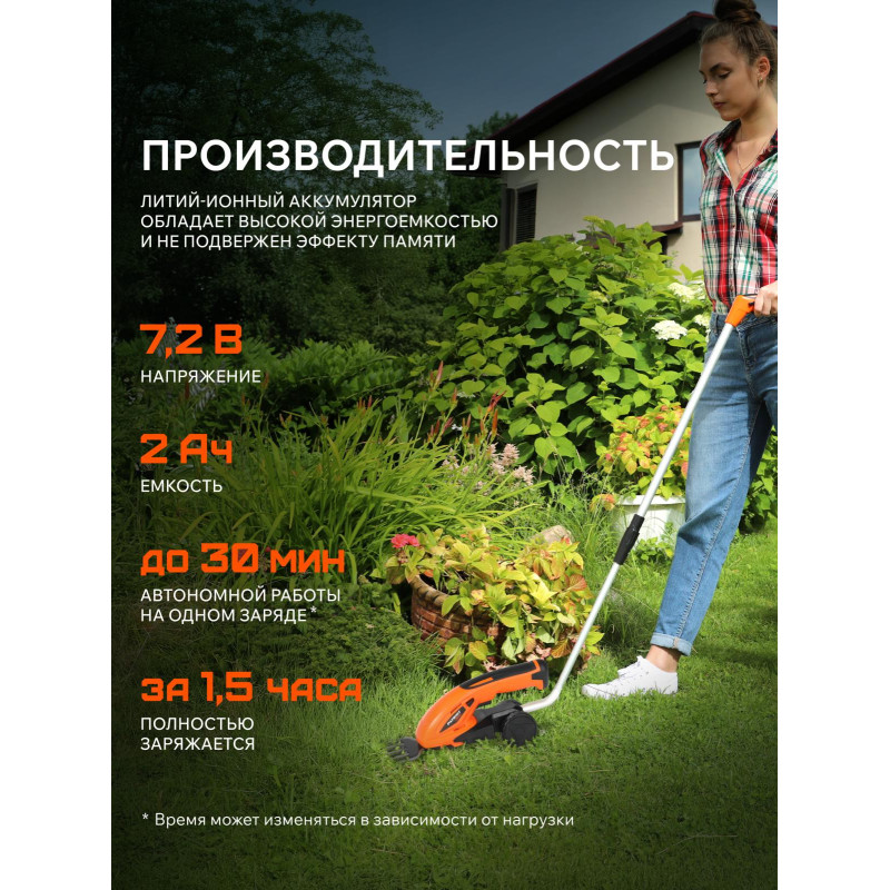 Ножницы-кусторез аккумуляторные СSH 272 – удобный инструмент для стрижки газона рядом с клумбами и дорожками, подрезания поросли на декоративных кустарниках. Удлиненное лезвие позволит без труда добраться к кустарникам с мощной и низкой кроной. Ножницы справятся с побегами крыжовника, малины, хвойниками. Прорезиненная рукоятка снижает уровень вибрации при работе. Ширина насадки для травы 90 мм, длина ножа для кустарников 170 мм. На одном заряде аккумулятора работают до 35 минут. Время полной зарядки аккумулятора до 90 минут.