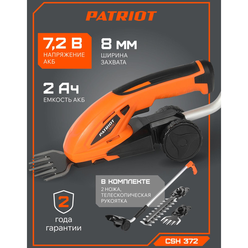 Ножницы-кусторез аккумуляторные PATRIOT СSH 372 с удлиненной ручкой (250205370)