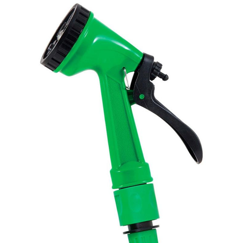7 режимов, шланг растяжной из латекса (номинальная длина–7.5м, макс. растяжимость-22.5м) с двумя соединителями диаметром 1/2', адаптер с переходником 1/2' и 3/4'
