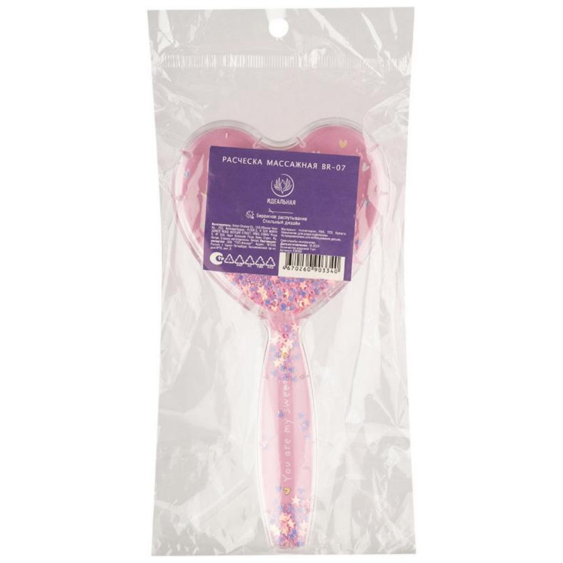 109106 Расческа для волос массажная ' Идеальная' с наполнителем ' Сердце' BR-07