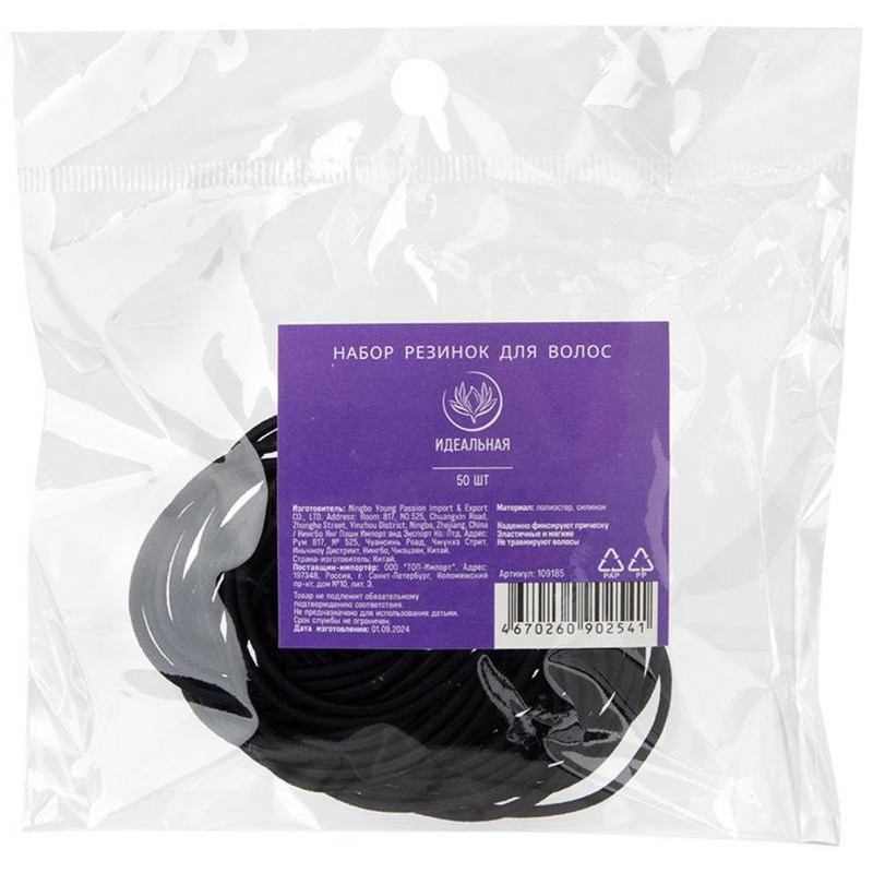 109185 Набор резинок для волос ' Идеальная' , 50шт, черные